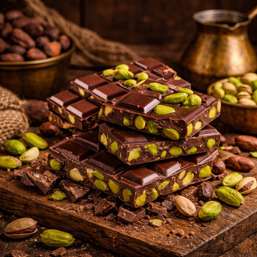 Fıstıklar, çikolatanın dokusunu bozmayacak şekilde özenle seçilir ve her tablette homojen bir dağılım sağlanır. Böylece her parça aynı lezzet deneyimini sunar.